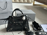 Sac Balenciaga City Mini en cuir noir avec clous argentés